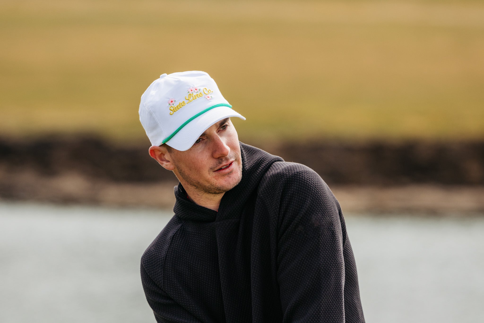 - SLC antler logo stitched on back panel in white