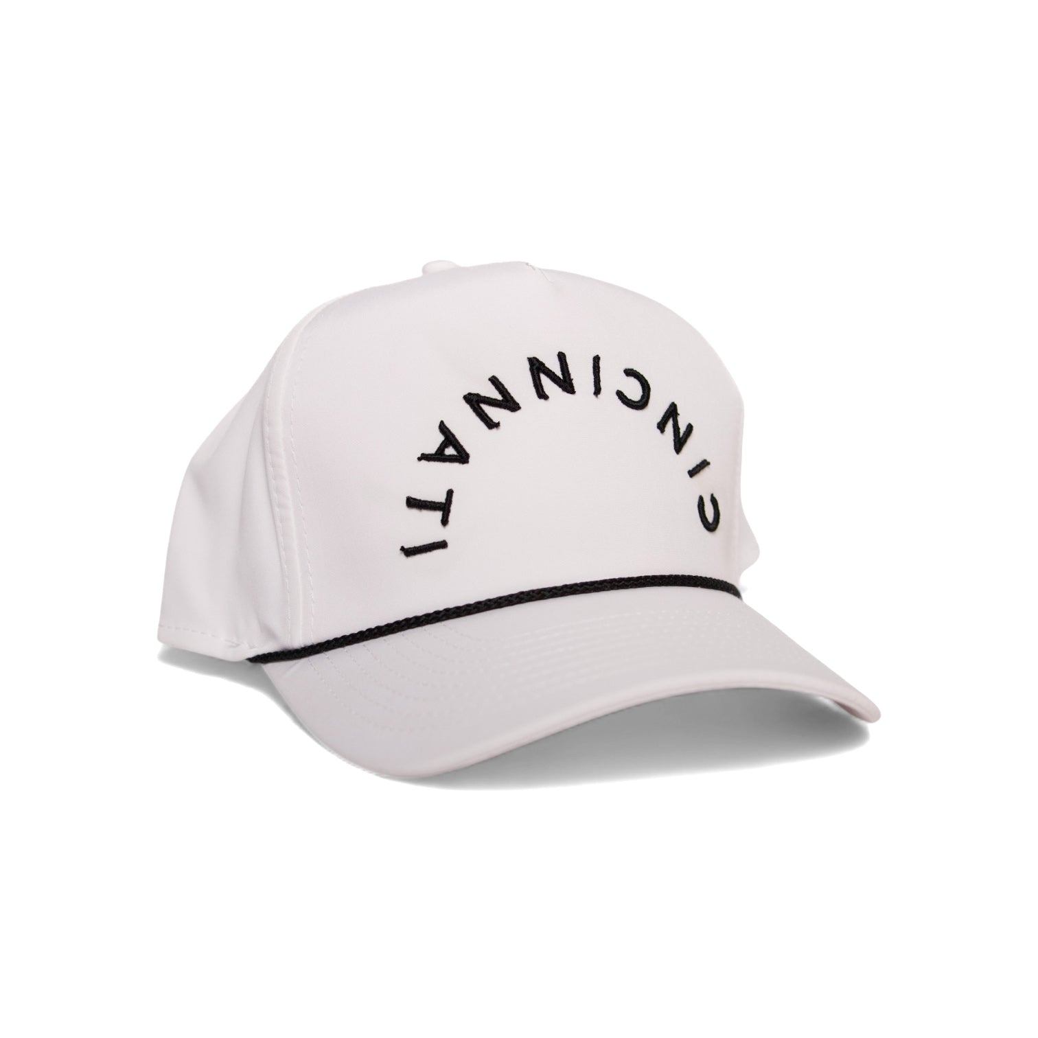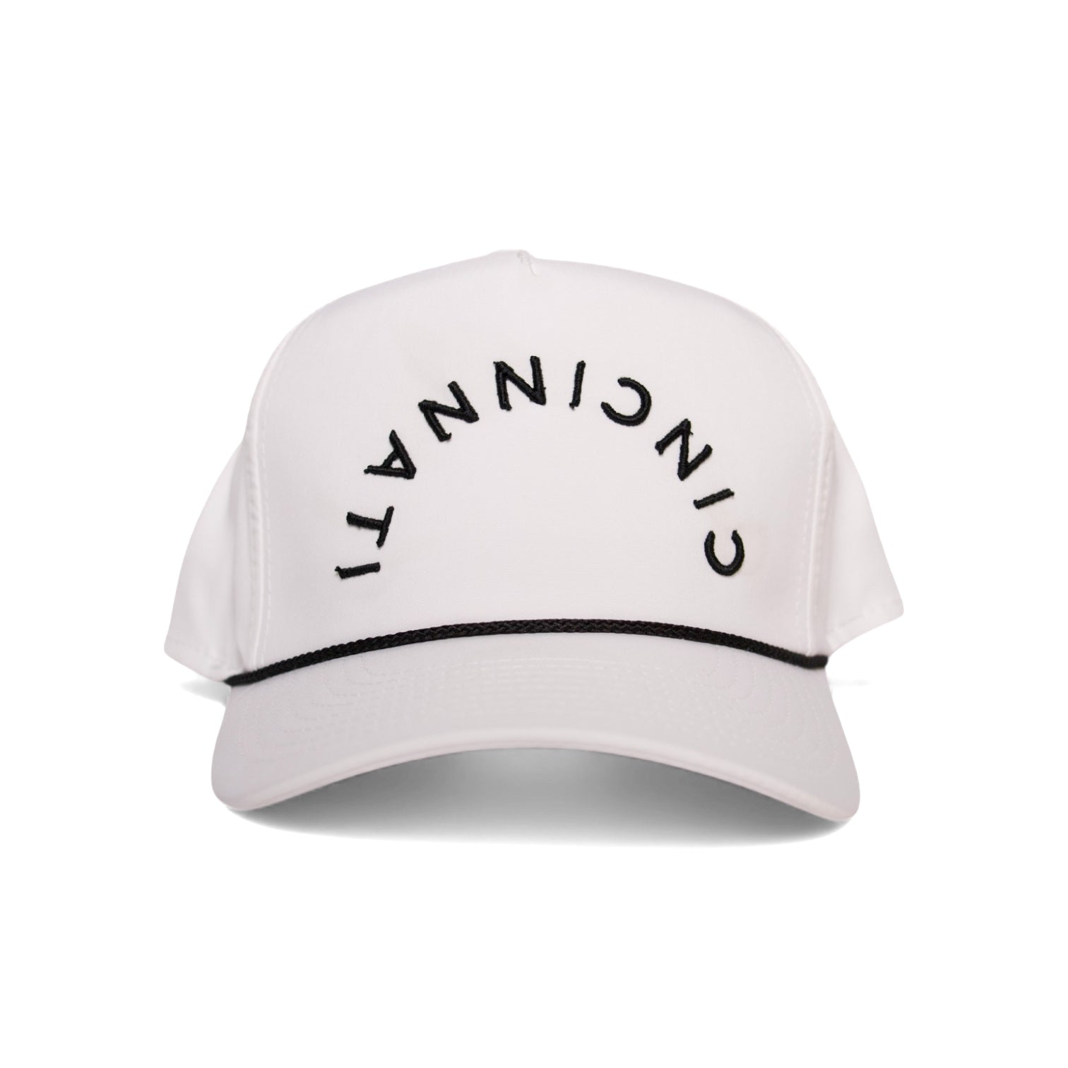 - StateLineCo exclusive upside down Cincinnati logo in black stitching