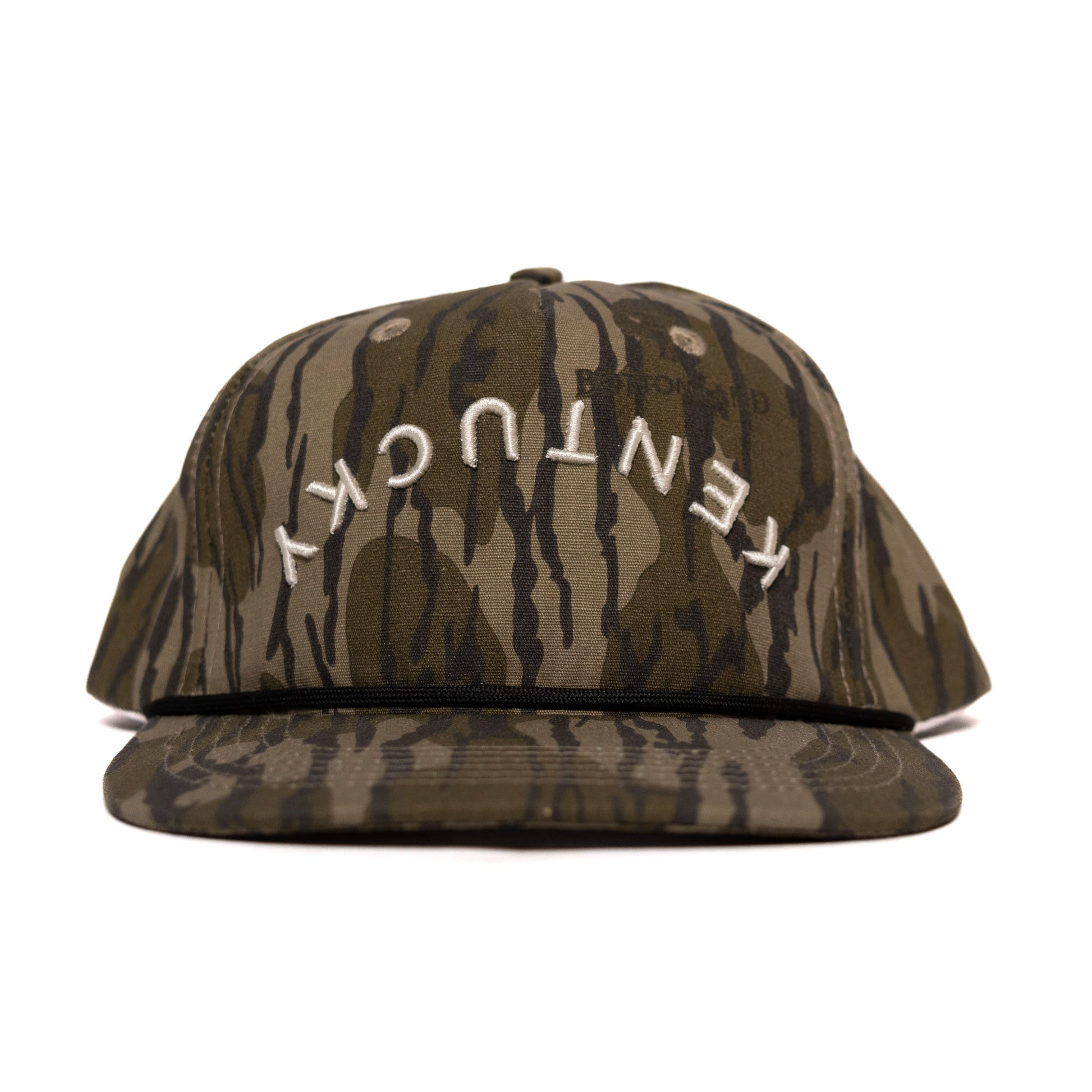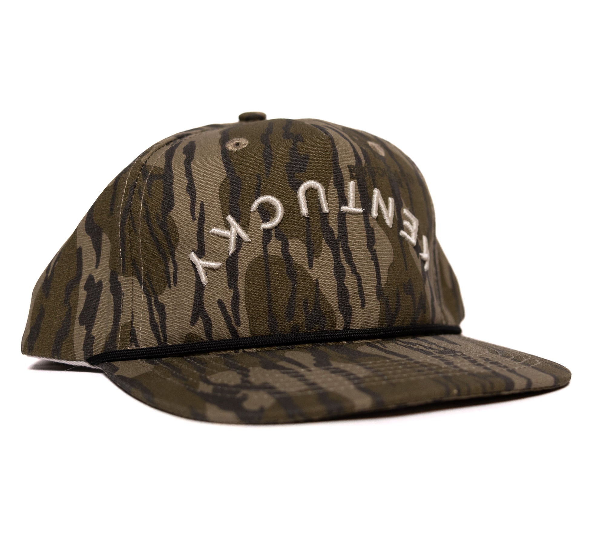 The Kentucky Pappy brings full Mossy Oak Bottomland camo to our signature upside-down Kentucky design. Built for hunters who want authentic camo that doesn't quit when the hunt does.